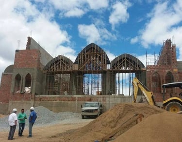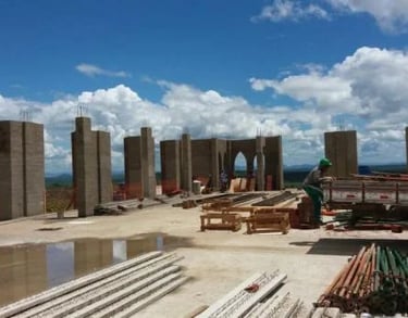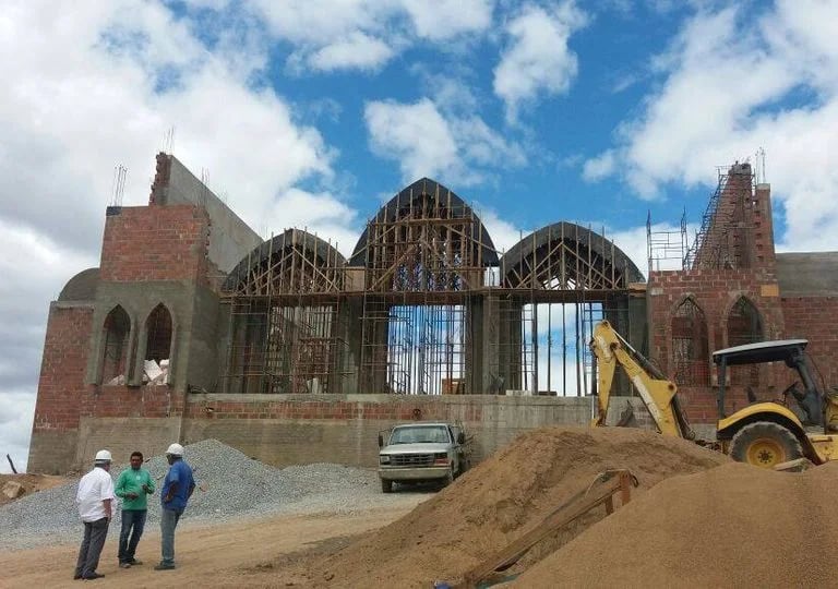 Entretanto, em 2011, Dom Manoel foi transferido para Diocese de Petrolina e tudo ficou parado. Em 2014, com o incentivo do novo Bispo Dom Eraldo Bispo da Silva, a obra do Pai foi retomada com um novo projeto realizado pelo arquiteto Alexandre Lessa, segundo a inspiração de Mãezinha. Em Fevereiro de 2015, começaram os trabalhos de terraplanagem em cima do morro. Logo em seguida, Jesus pediu a Mãezinha que fosse a Portugal para colaborar na preparação do centenário das aparições de Fátima. De março a dezembro de 2015, Mãezinha, Paizinho e Pe. Lourenço foram morar na casa de Fátima. Em 6 de junho de 2015, foi celebrada por Sua Excelência Reverendíssima, Dom Eraldo, a Missa do lançamento da primeira pedra do Santuário. Um fato estranho aconteceu naquela ocasião: uma enorme cascavel estava escondida no buraco onde deveria ser colocada a primeira pedra. Dom Eraldo e os membros da Comunidade presentes não atribuíram ao acaso aquele fato, mas o interpretaram como um sinal de que o inimigo de Deus teria combatido muito contra esta obra. Antes de iniciar a construção, logo depois do acabamento dos projetos arquitetônicos, Mãezinha teve uma visão em que o Santuário caía. Por isso, procurou um engenheiro estrutural muito conceituado e experiente, o qual porém, antes de Mãezinha viajar para Portugal, impôs condições taxativas quanto aos materiais, as tecnologias de construção e ao acompanhamento da obra, às quais, mesmo com relutância, mas confiando na profissionalidade dele, Mãezinha teve que ceder. No começo de 2016, quando já estava sendo montado o teto do Santuário, Jesus mostrou a Mãezinha graves defeitos na estrutura do Santuário, seja nas fundações como nas colunas. Depois de muita insistência, o engenheiro, cavando ao lado de uma das fundações e furando com broca algumas colunas, viu que o Santuário fora construído em aterro e as colunas não foram devidamente preenchidas com concreto. Começaram, então, dois longos anos de sofrimento e de grande prova na fé para Mãezinha. Foram os anos da restauração, com a qual acabou o dinheiro disponível para a obra.